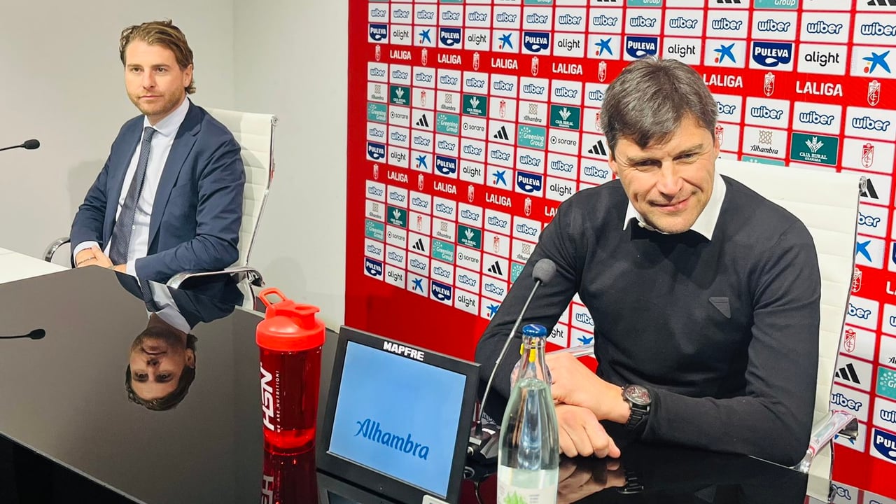 Matteo Tognozzi y 'Cacique' Medina, director deportivo y entrenador del Granada CF.@SerDeportivosGR