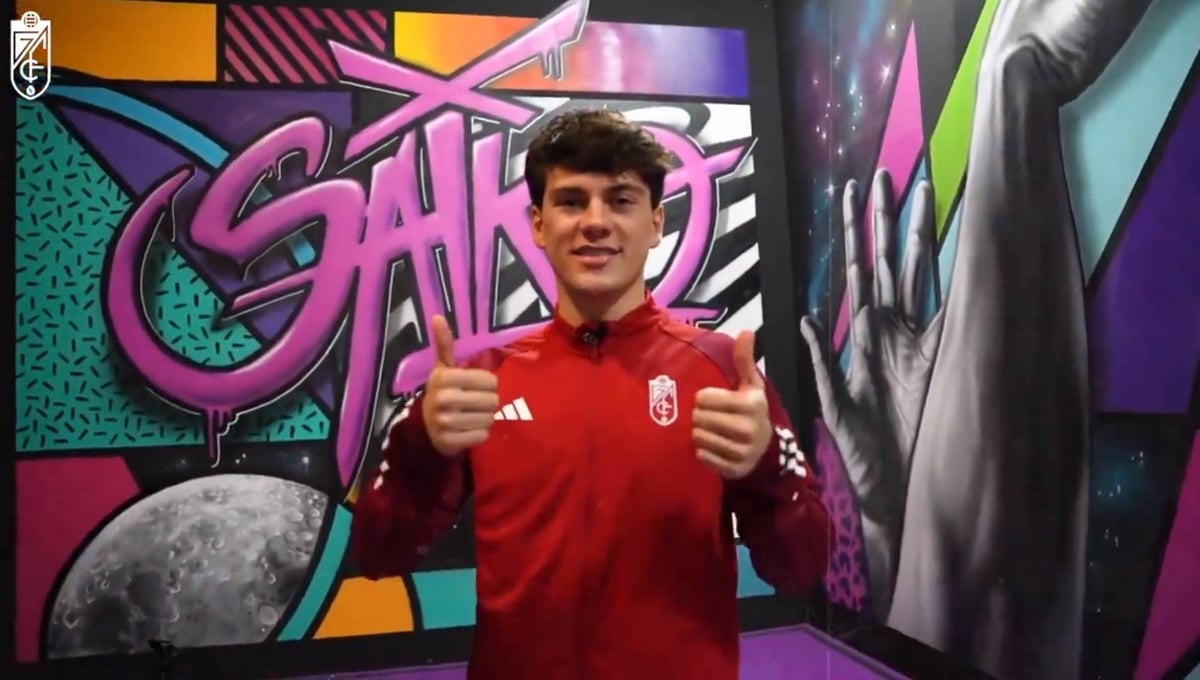 Facundo Pellistri, en el anuncio oficial del Granada sobre su incorporación.X / Granada CF