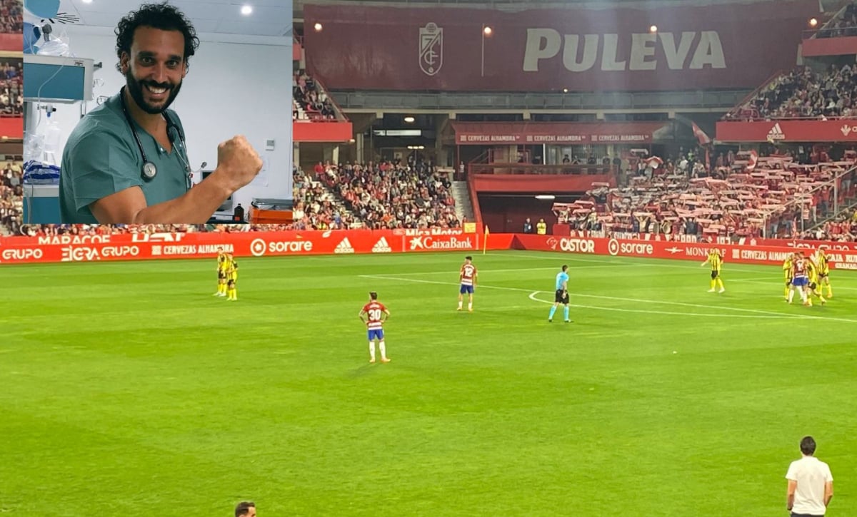El médico granadino fue homenajeado durante el encuentro disputado entre el Granada y el Real Zaragoza este viernes