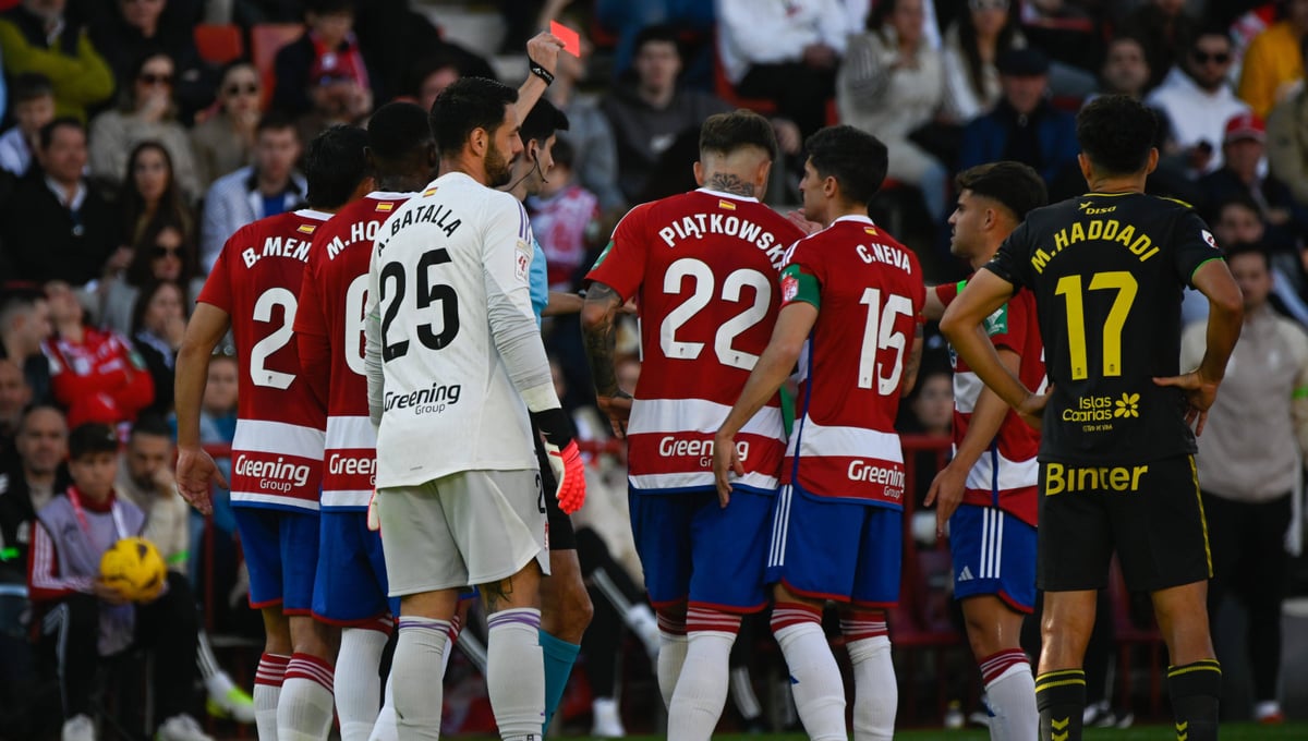 En dicho envite, los nazaríes pusieron el grito en el cielo por la expulsión de Piatkowski en el minuto 21 de partido. En este sentido, se reclama que la falta del central polaco no fue tan brusca como para merecer dicho castigo; pero, además, las quejas se sustentan en el hecho de que el balón no iba a hacia la portería de Augusto Batalla y Carlos Neva podría haber llegado también a la cobertura. Eso fue lo que interpretó, de hecho, el colegiado Busquets Ferrer, pero desde la sala VOR, Pizarro Gómez le hizo ver otro escenario.