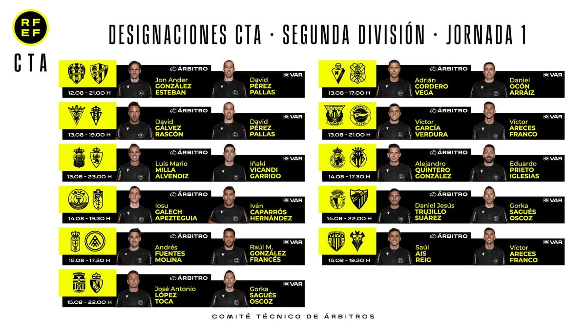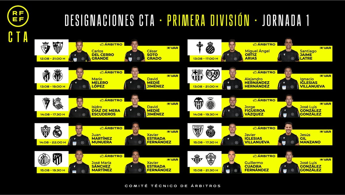 La RFEF ha dado a conocer a los hombres que impartirán justicia en los partidos con los que se inaugurará la temporada 2022/2023 tanto en Primera como en Segunda división