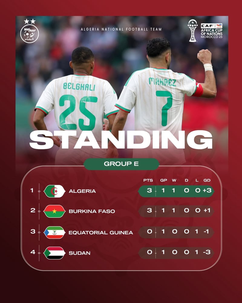 Luca Zidane está encuadrado con la Selección de Argelia en el grupo E. Con su triunfo ante Sudan, el conjunto dirigido por Vladimir Petkovic es líder de su grupo ya que Burkina Faso ganó por dos goles a Guinea Ecuatorial pero recibió un gol en contra. El siguiente duelo para la Argelia de Luca Zidane será el 28 de diciembre ante Burkina Faso.