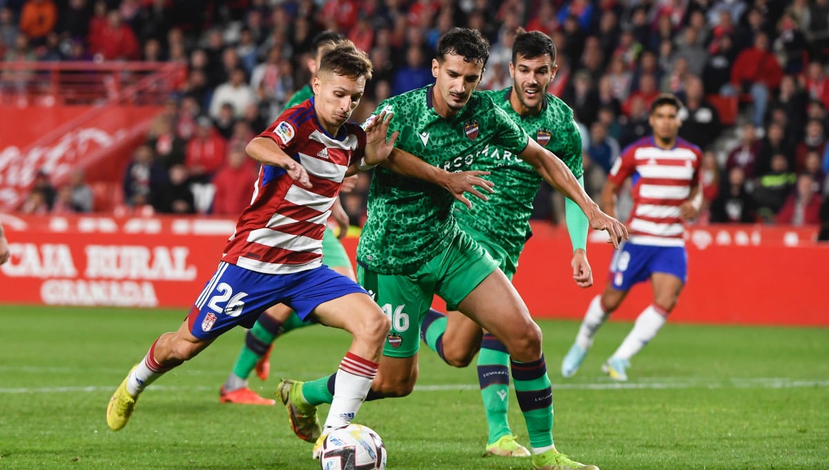 El Granada y el Levante, dos de los claros favoritos al ascenso a LaLiga Santander, empataron este jueves sin goles (0-0) en el Nuevo Los Cármenes en un choque de mayor dominio de los andaluces pero de pocas ocasiones, igualada que es la segunda consecutiva de los rojiblancos y que pone fin a una racha de cuatro triunfos seguidos de los visitantes.