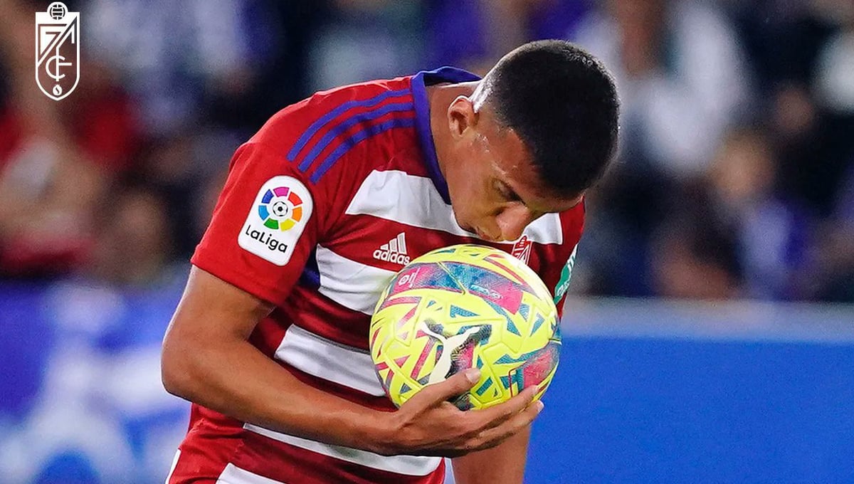 Uzuni besando un balón para dar suerte a su equipo@GranadaCF