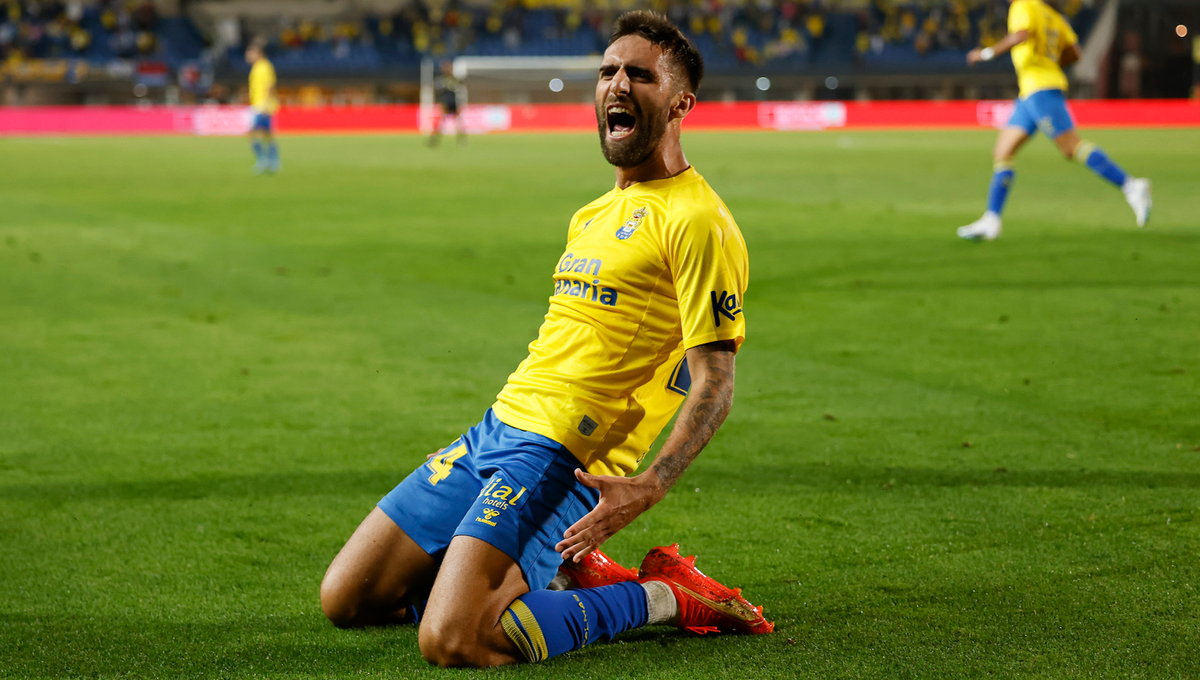Pejiño celebra un gol con Las PalmasUdlaspalmas.es