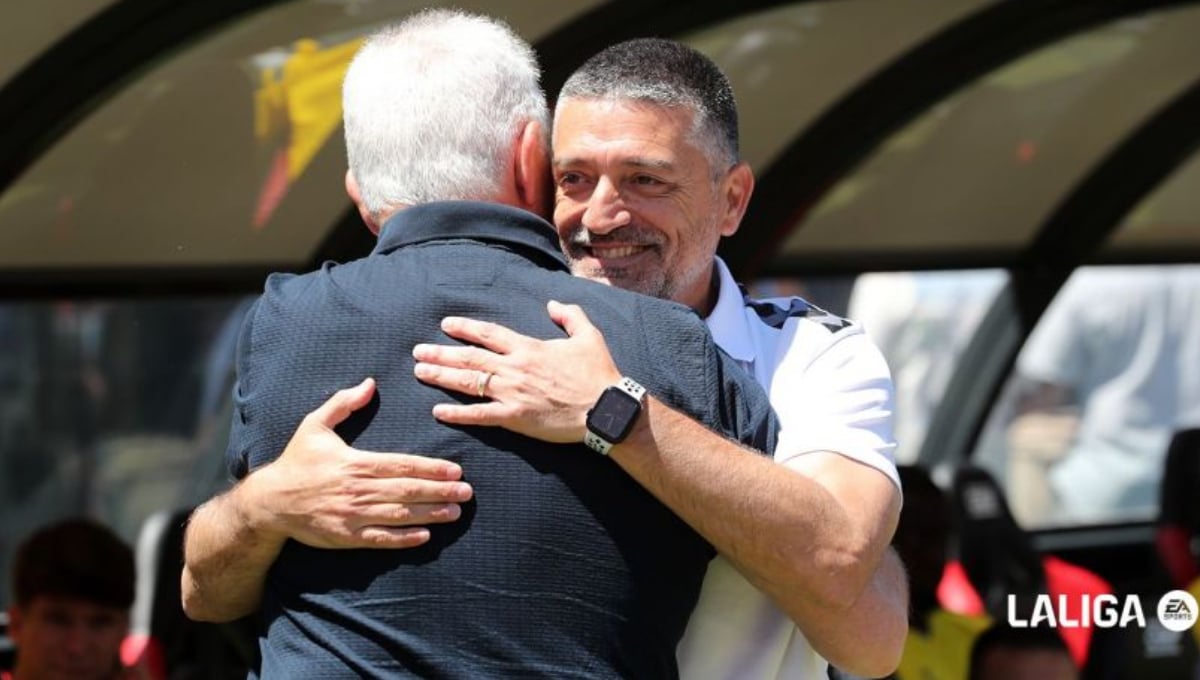 García Pimienta saluda a Aguirre, al que suena para suplir en Mallorca.LaLiga