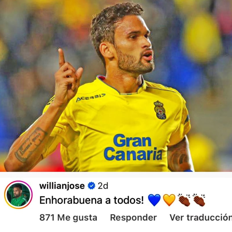 Y el caso es que en el Estadio Gran Canaria sueñan con repatriar a otro bético. Se trata de Willian José, que felicitaba por el ascenso a su ex equipo a través de Instagram para recibir el cariño de los que fueron sus compañeros e hinchas, que guardan un grato recuerdo de la 15/16. A las órdenes de Quique Setién, el brasileño anotó nueve goles y brindó una asistencia, lo que le valió su fichaje por la Real Sociedad. Y no es que el Betis considere intransferible a su artillero, pero, lógicamente, habrá que contar con su deseo de salir, hasta ahora inexistente (salvo cuando vio peligrar su inscripción en agosto del año pasado y manejaba una propuesta del Valencia), y con la capacidad de inversión amarilla, pues en La Palmera querrán recuperar ya o asegurarse que los alrededor de 10 kilos invertidos en su contratación (entre préstamo remunerado, sueldo y obligación de compra).