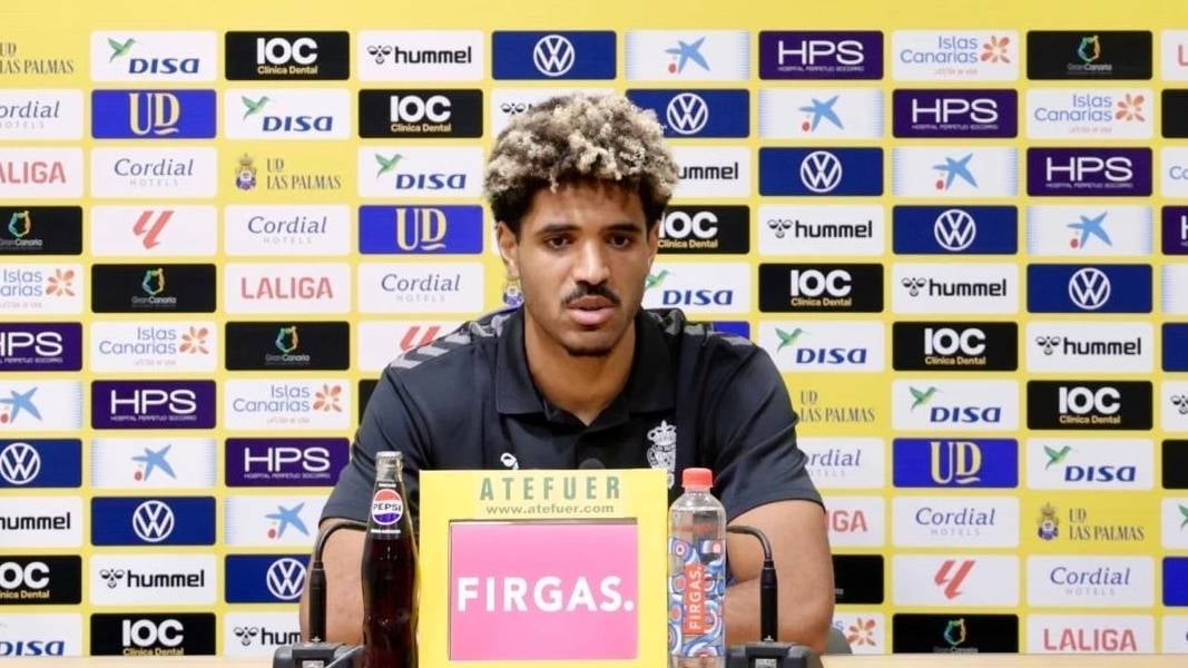 El defensor de la UD Las Palmas presta declaraciones a los medios de comunicación en la previa del partido contra el Valencia de LaLiga EA Sports