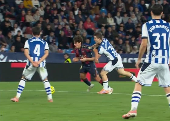 Real SociedadClamor por el penalti de Mariezkurrena en el Levante - Real Sociedad: "No puede serlo en la vida"