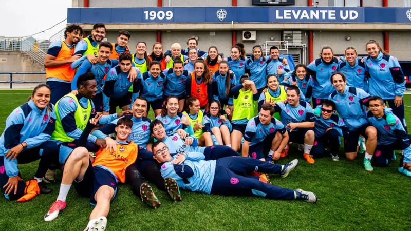 En cuanto a lo deportivo, la UD Levante se medirá este próximo domingo al Elche, pero hoy los granotas, junto a las futbolistas del primer equipo femenino, han realizado, además de su sesión habitual, un entrenamiento muy especial. Con motivo del Día Mundial del Síndrome de Down, el Levante y su Fundación han vuelto a demostrar su compromiso con la inclusión social y han llevado a cabo un partidillo en el que han podido disfrutar todos con lo que más les gusta, el balón.