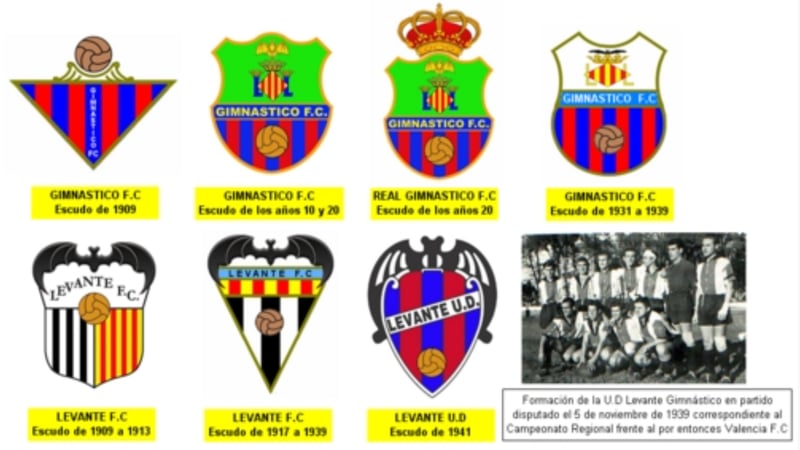 El escudo actual del Levante Unión Deportiva tiene su origen en la fusión de los símbolos del Levante Fútbol Club y del Gimnástico Fútbol Club. En el año 1937, el Levante FC se enfrentó al Valencia en la final de la Copa de la República, disputada en el campo de Sarriá, en Barcelona. Los levantinistas vencieron por 1-0 y se proclamaron campeón del torneo. Tiempo después, se organizó un encuentro amistoso entre ambos equipos valencianos a forma de homenaje por la consecución de ese título. Mientras que el Gimnástico se presentó con sus jugadores, el equipo homenajeado lo hizo con futbolistas del Valencia y del Real Madrid. Aquella tarde el resultado fue de empate a cuatro.