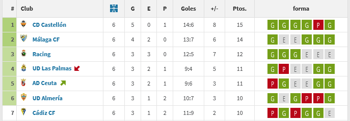 Pero la esperanza en el Málaga puede ir más allá si se analiza una hipotética clasificación desde que llegó Funes. En estas seis jornadas con Funes al frente del Málaga, el cuadro de La Rosaleda sería segundo con los anteriormente mencionados 14 puntos y solo por detrás de un Castellón de Pablo Hernández que se está mostrando intratable. El Málaga sería mejor que el Racing de Santander (12), Las Palmas (11), Ceuta (11) y Almería (10).