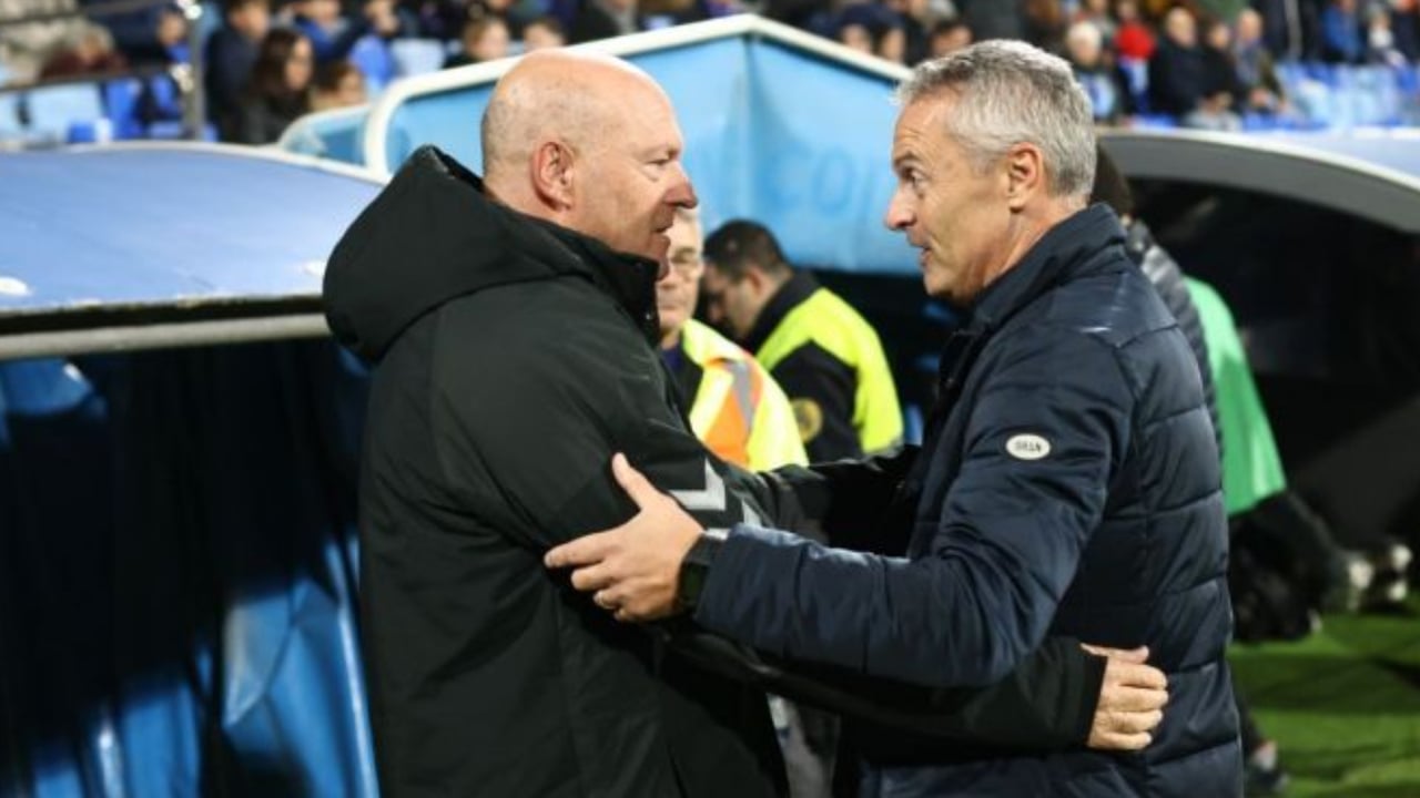 Pepe Mel saludando a Fran Escribá antes del partido frente al ZaragozaLaLigaSmartbank