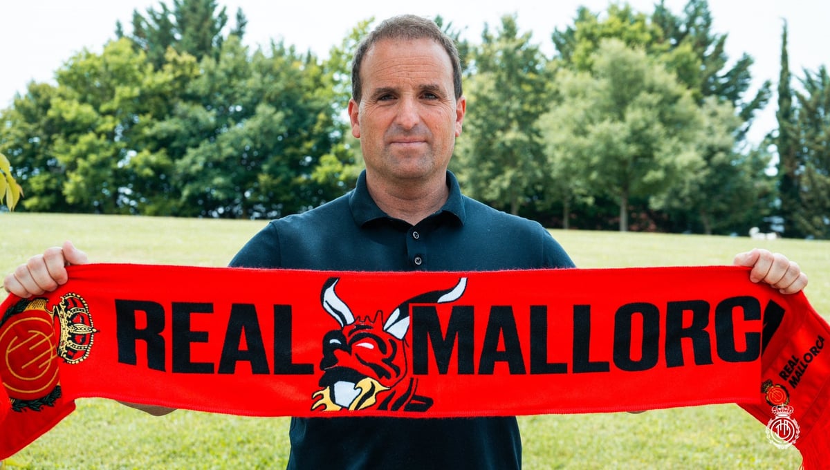Jagoba Arrasate posando con la bufanda del MallorcaRCDM