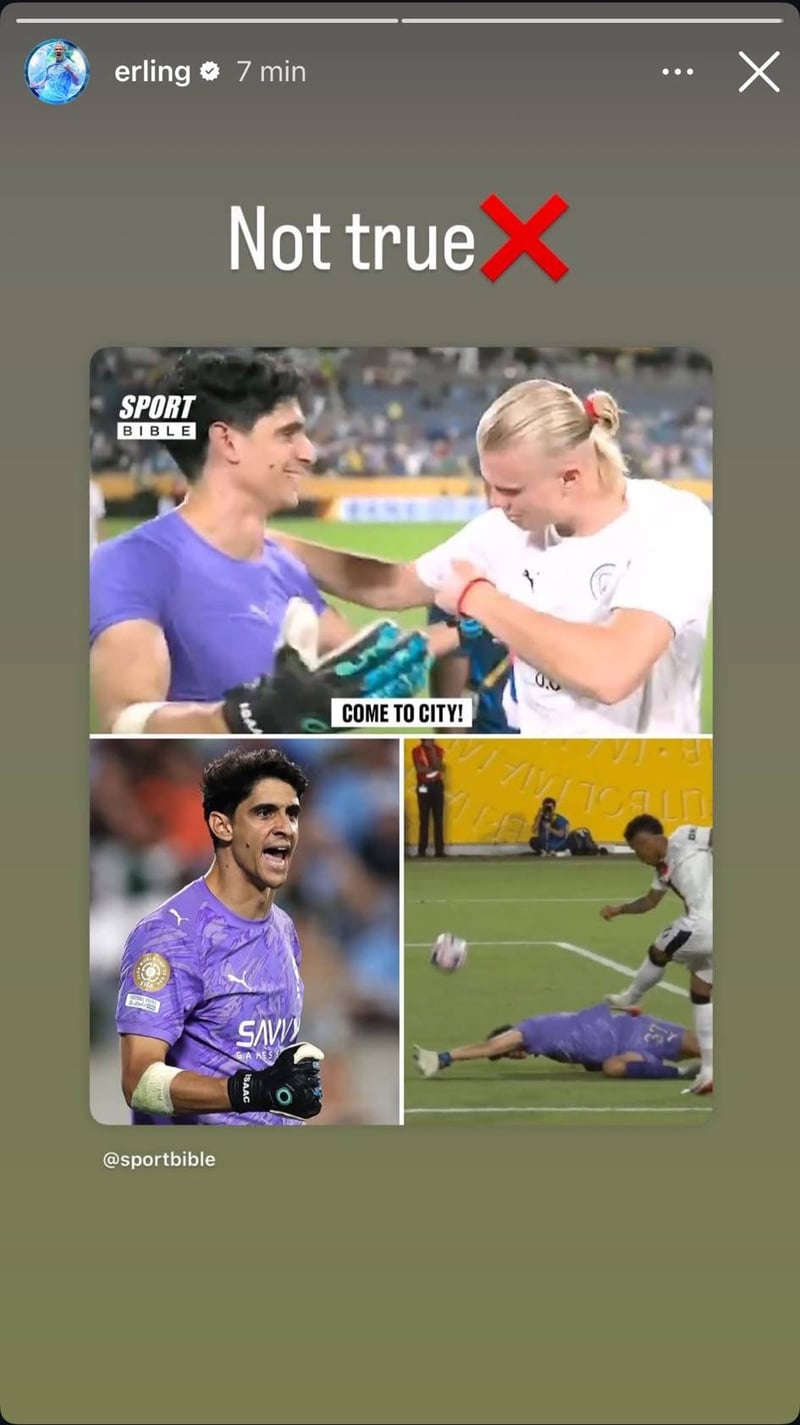 El delantero noruego publicó una historia en Instagram en la que negaba haber invitado a Bono a unirse al City, y poco después la eliminó