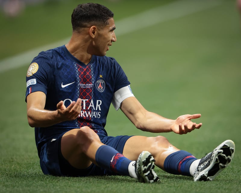 Achraf y Nuno Mendes no se entendieron bien en la falta a balón parado, lo que provocó que la jugada no saliera como esperaban y perdieran la oportunidad de generar peligro.
