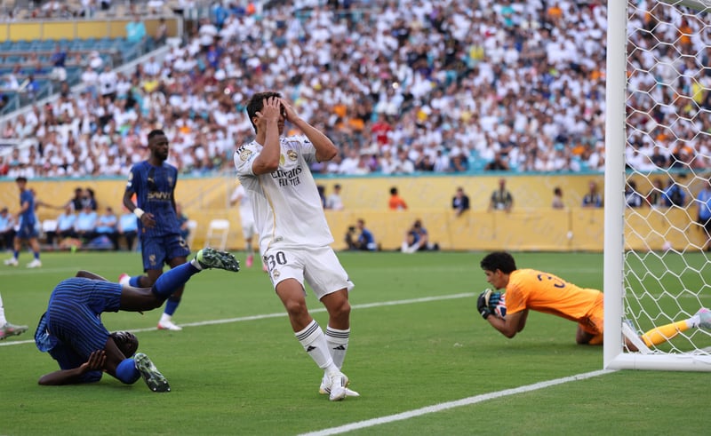 Fran García sufrió ante Malcom por la banda izquierda y Salem El Dawsari voló por la banda derecha. Solo un milagro de Courtois negó el gol al extremo saudí. Xabi Alonso no podía estar satisfecho con el arranque de su equipo. Pero el 'cooling break' concedido por el árbitro a los 25 minutos le sirvió para reorganizar ideas. Rodrygo tuvo la primera con un zurdazo que acabó alto por poco. Fue el aviso previo al gol.