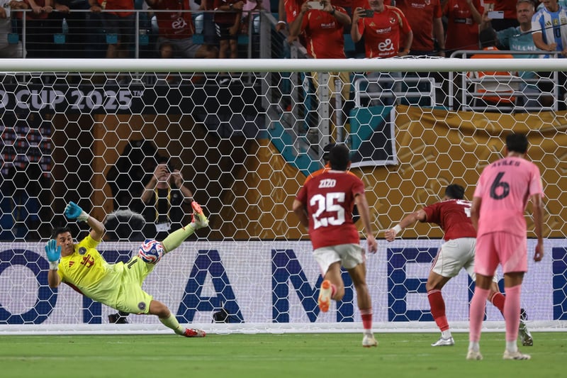 En el minuto 42 del encuentro disputado en el Hard Rock Stadium de Miami, el extremo egipcio provocó una falta dentro del área que él mismo se apresuró a ejecutar. El problema no fue el fallo en sí, sino que no era el encargado oficial de lanzar desde los once metros. A pesar de mostrar confianza, su disparo fue contenido por el portero Óscar Ustari, desperdiciando una ocasión clave.