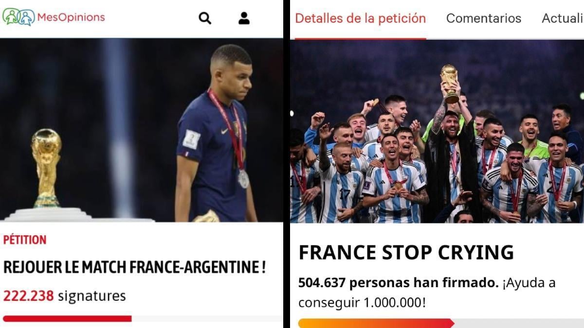 El Mundial que recientemente levantó Messi con Argentina ha hecho 'pupa' entre la sociedad francesa. La potente selección de Francia liderada por Kylian Mbappé, no ha logrado asimilar esa derrota hasta el punto que algunos de ellos han promovido una recogida firmas para pedir que vuelva a repetirse ese partido.