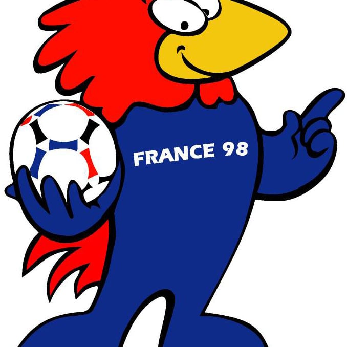 Representa a un gallo, uno de los símbolos nacionales del país galo, con las palabras France 98 (Francia 98) en su pecho.