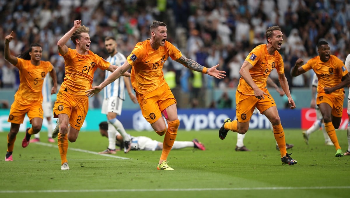 Penaltis: 0-0: Van Dijk, para Dibu Martínez; 0-1, Messi: gol; 0-1, Steven Berghuis, para Dibu Martínez; 0-2, Leandro Paredes, gol; 1-2, Teun Koopmeiners; 1-3, Gonzalo Montiel: gol; 2-3, Wout Weghorst; 2-3, Enzo Fernández, fuera; 3-3, Luuk De Jong gol; 3-4, Lautaro Martínez gol