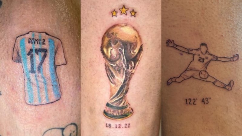 Así, en la parte trasera del gemelo se ha tatuado la camiseta albiceleste que portó en el Mundial, con su nombre y el número 17 a la espalda, en la parte trasera del muslo también se ha tatuado una de las paradas del Mundial, la de su compañero 'Dibu' Martínez en la final, con el tiempo de la prórroga ya cumplido y con empate a tres, lo que permitió llegar a Argentina con vida a los penaltis que posteriormente los coronarían como campeones del mundo. Junto a la imagen de la parada del 'Dibu', el minuto exacto de la misma: 122' 43''.