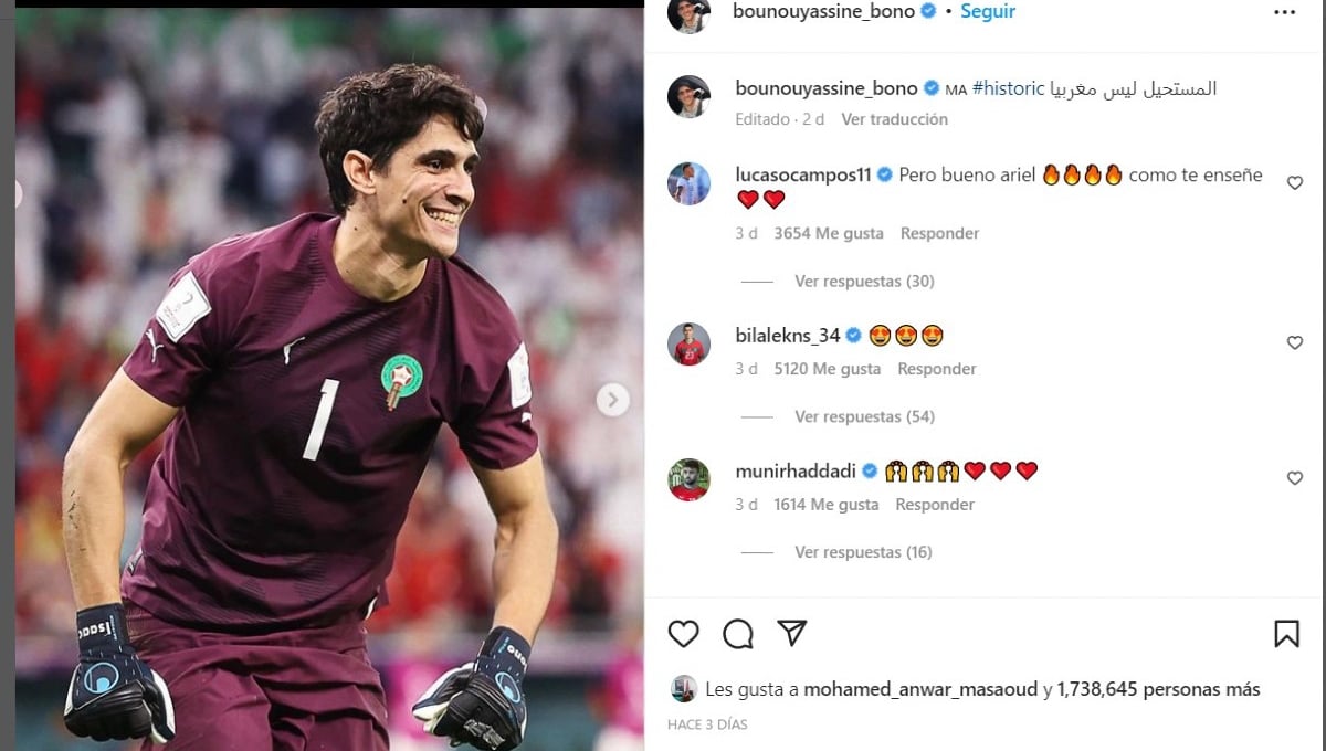 Y este con el equipo con el que sale Marruecos: Bono; Achraf, El Yamiq, Saiss, Attiat-Allah; Amrabat, Ounahi, Amallah; Ziyech, En-Nesyri y Boufal. La presencia del jugador del Valladolid El Yamiq y de Attiat-Allah son las novedades.