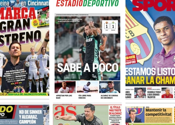PortadasEl tropiezo del Betis ante el Elche, el estreno del Real Madrid, el Barcelona y la Champions League... Así vienen las portadas