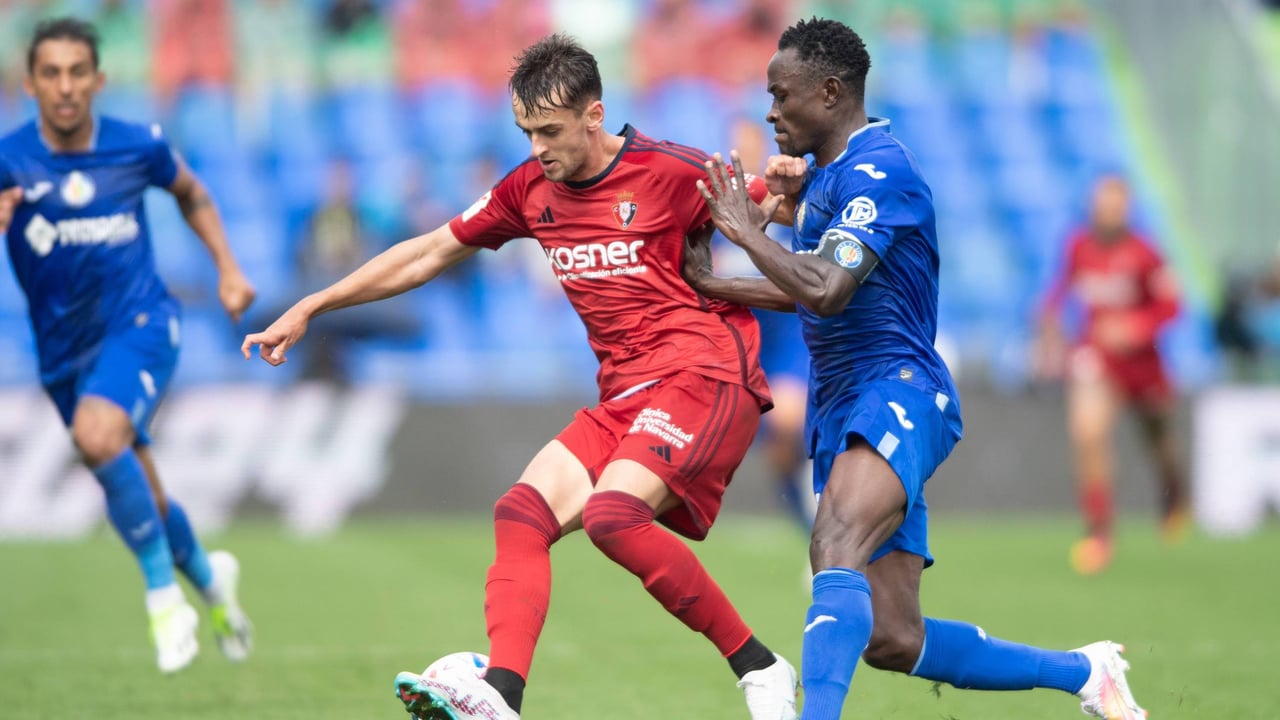 Aimar Oroz esconde el balón ante DjenéCordon Press