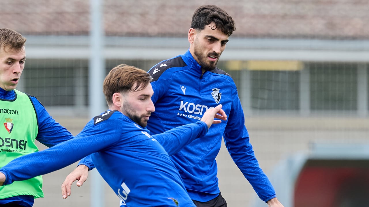 Catena, en una acción con Moncayola en eun entrenamientoCA Osasuna