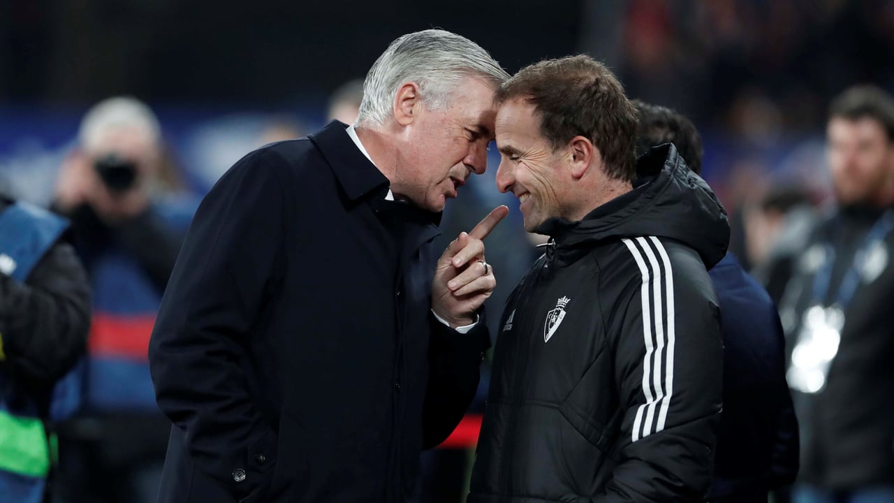 El pasado 18 de febrero se enfrentaron Osasuna y Real Madrid. Aquel partido se disputó en El Sadar, el próximo que mida a ambos equipos será en La Cartuja de Sevilla y habrá un título de por medio. Rojillos y blancos se disputarán la Copa del Rey, un hecho que ya sabía Carlos Ancelotti desde la última vez que se midió a los de Pamplona. Ese día, antes de comenzar el partido, abrazó a Jagoba Arrasate y le dijo al oído: "Vamos a jugar la final de Copa del Rey".