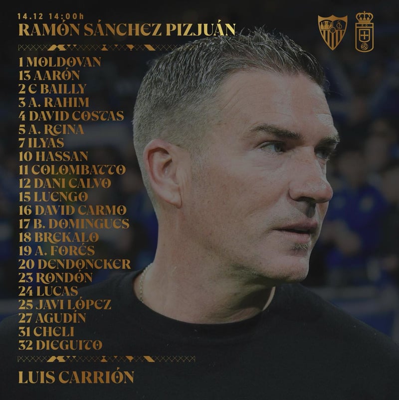 El técnico del Real Oviedo, Luis Carrión, ha pasado por la sala de prensa del Carlos Tartiere justo antes del último entrenamiento del conjunto carbayón antes de emprender el viaje hasta la capital andaluza, donde en la sobremesa de este domingo visitará al Sevilla FC en el Ramón Sánchez-Pizjuán. Para este encuentro, de la jornada 16 de LaLiga EA Sports, el entrenador ha dado una lista de 22 convocados de la que se han caído a última hora Ovie Ejaria y Luka Ilic, quienes eran dos de las principales alternativas para suplir a Santi Cazorla, que está sancionado tras ser expulsado contra el Villarreal CF, al igual que Federico Viñas. Asimismo, no cuenta con los también convalecientes Brandon Domingues y Álvaro Lemos; pero recupera a Javi López después de tres semanas en el dique seco.