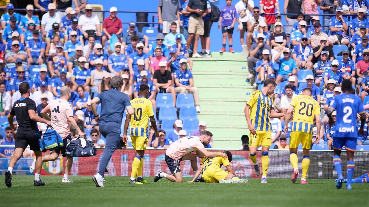 El accidente se produjo en el minuto 8, cuando el defensa carbayón chocó de forma violenta con Diego Rico al disputar un balón aéreo. Vidal cayó al suelo mareado, con una brecha en la cabeza, lo que obligó a su evacuación inmediata en camilla y con collarín, antes de ser trasladado en ambulancia al Hospital Universitario de Getafe.