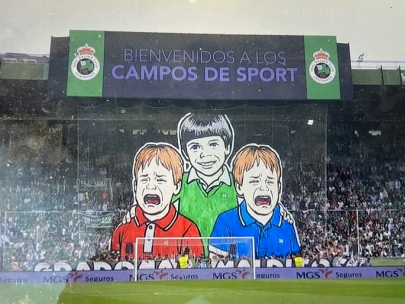 En los prolegómenos del encuentro entre Racing de Santander y Real Oviedo se vivió en las gradas del Sardinero como desde uno de los goles se mostraba un tifo en el que se mostraba a 3 niños, uno con los colores del Racing de Santander y sonriente, además de otros 2 con los colores de Sporting de Gijón y Real Oviedo, llorando.