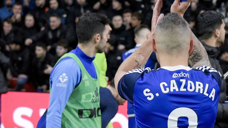 Tras el pitido final, Cazorla no dudó en dirigirse junto al resto del equipo hasta la zona en la que se encontraban los aficionados oviedistas para agradecerles su apoyo durante los noventa minutos y pedirles perdón por no haberles podido dar una alegría.