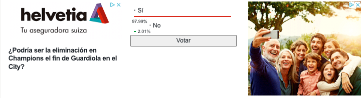 La afición tiene claro que el adiós de Pep Guardiola está más que clara. Según hemos podido preguntar en la Encuesta Helvetia de ESTADIO Deportivo, el 98% de los votos recogidos apuntan al fin de la etapa del técnico catalán en el Manchester City.