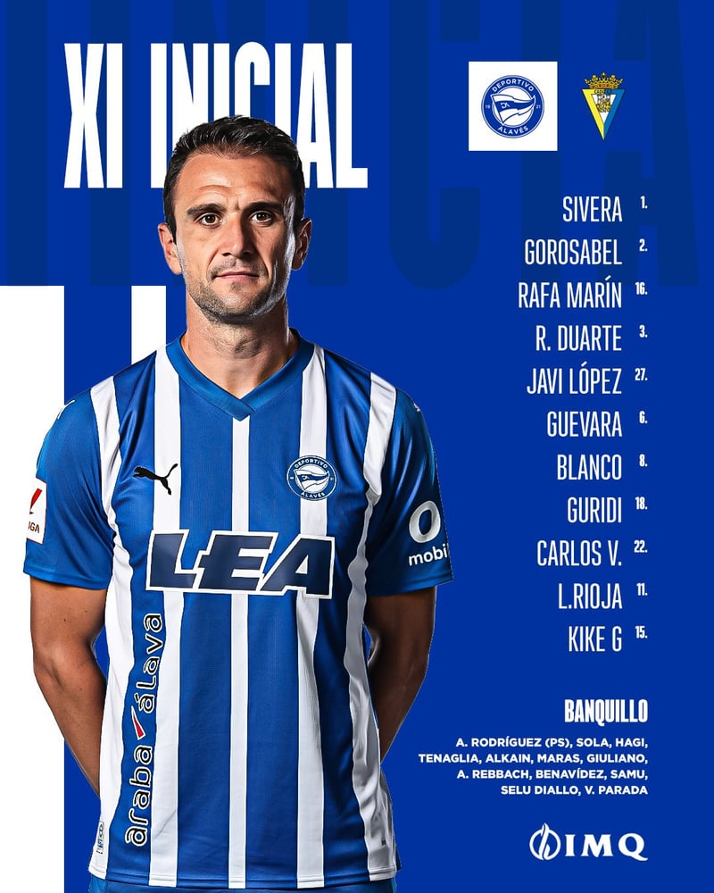 Deportivo Alavés: Sivera; Gorosabel, Duarte, Marín, Javi López; Blanco, Guridi; Vicente, Rioja, Guridi; y Kike.