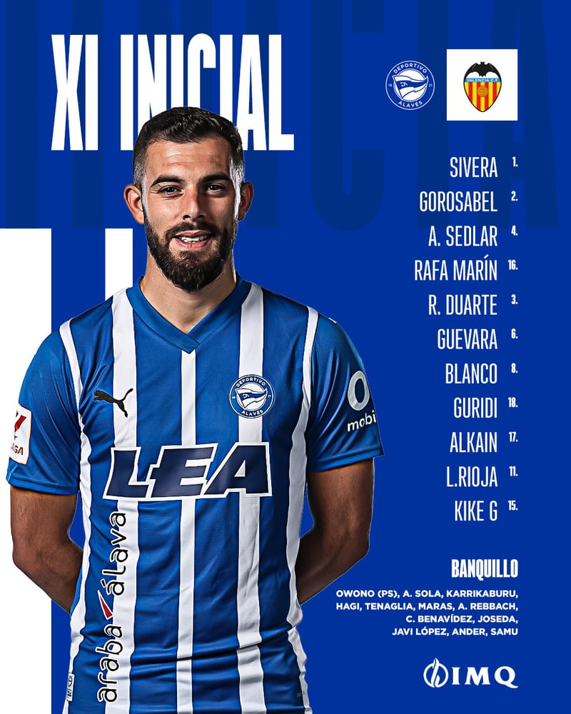 ¡El Deportivo Alavés ya ha anunciado su XI para medirse al Valencia en esta jornada 4 de LaLiga EA Sports!