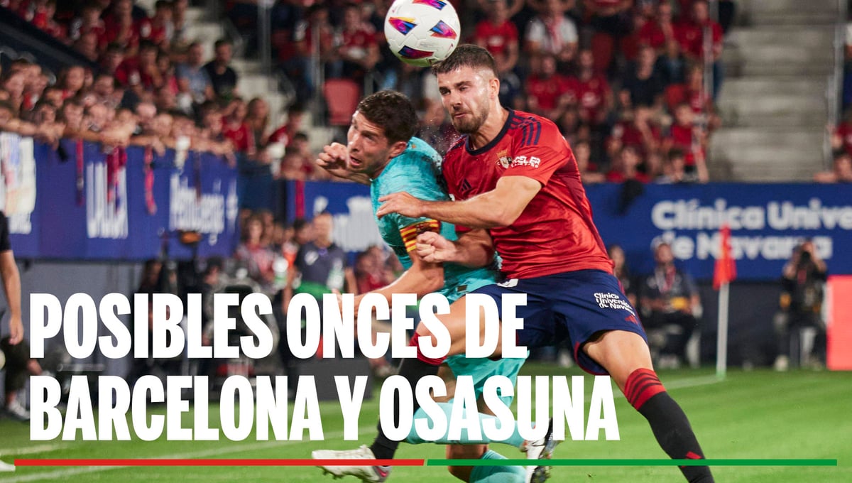 Posibles onces:Barcelona: Iñaki Peña; Kounde, Araujo, Christensen, Balde; Frenkie de Jong, Gundogan, Fermín; Raphinha, Lewandowski, Ferran Torres.Osasuna: Sergio Herrera; Areso, Catena, David García, Peña; Iker Muñoz; Moncayola, Aimar, Moi Gómez, Arnaiz; Budimir.