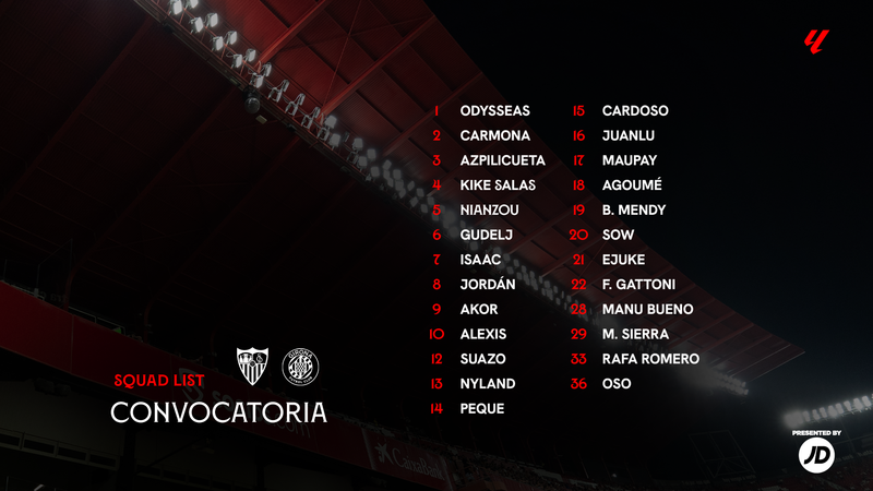 Sevilla FC: Vlachodimos; Carmona, Azpilicueta, Gudelj, Kike Salas, Suazo; Batista Mendy, Agoumé, Peque; Maupay y Akor Adams.