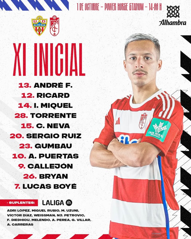 Con la destitución de Vicente Moreno es toda una incógnita saber que hará Alberto Lasarte... El Almería calienta motores a través de X, antes Twitter, invitando a la afición y amantes del deporte rey en general a que hagan sus apuestas, ¿con qué once saldrán los locales ante el Granada?