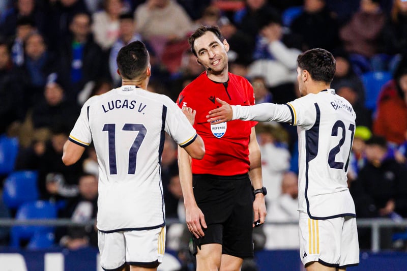 Antes Choco Lozano pidió penalti por un agarrón de Kike Salas, De Burgos Bengoetxea decretó que no había nada tras ser revisada la jugada en el VAR.