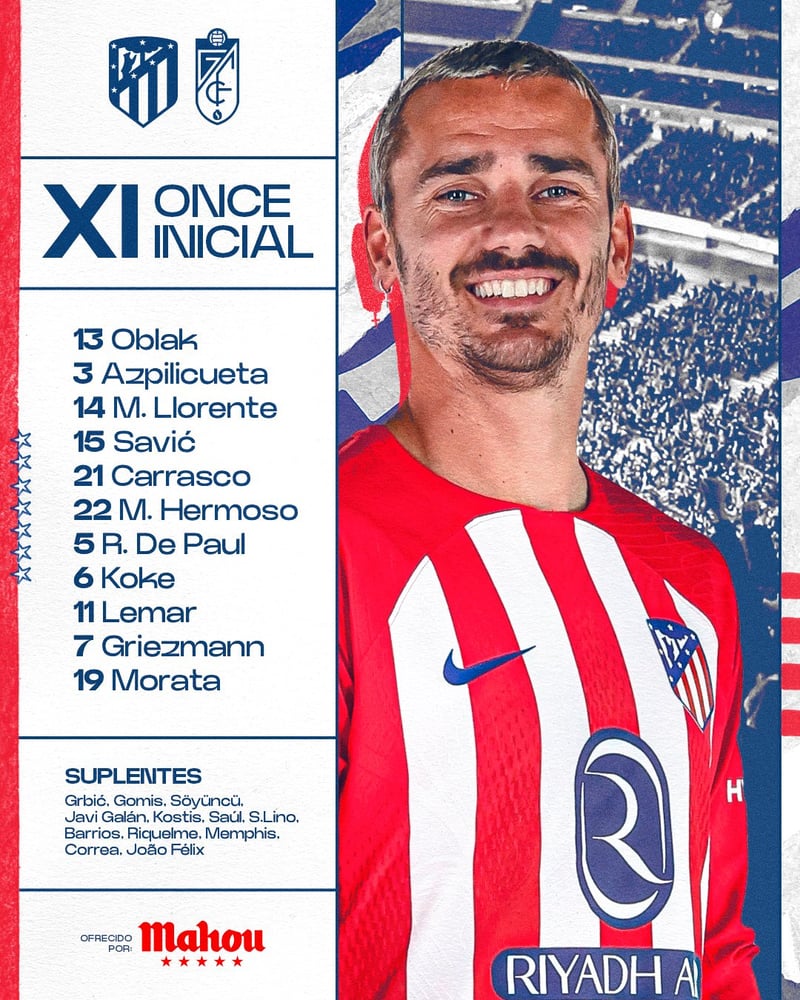 Debutará Azpilicueta y el ataque tiene dinamita con Griezmann y Morata... Joao, al banquillo, ¿tendrá algún minuto? ¿Qué es lo que más os ha llamado la atención?