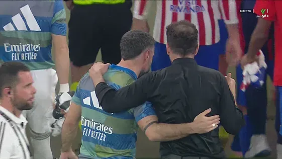 Cuando ambos equipos se marchaban a vestuarios, Diego Simeone ha mantenido una breve conversación con el madridista Dani Carvajal.