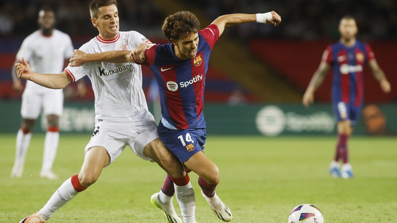 Montjuic vio un Barça efervescente en el primer tiempo, con un ataque sin un 'nueve' fijo por la baja de Lewandowski, con Ferran, Joao y Fermín permutando posiciones constantemente. En los primeros 20 minutos, pudo avanzarse el cuadro local mediante un disparo del portugués escupido por el travesaño y otro de Fermín que salvó Unai Simón bajo palos.