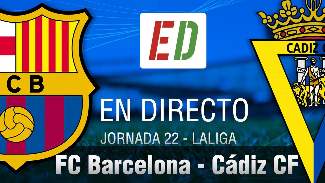 ¡Buenas noches! Bienvenidos al directo del FC Barcelona - Cádiz CF, partido correspondiente a la jornada 22 de LaLiga. Un encuentro con dos equipos que luchan por objetivos totalmente distintos. El conjunto catalán quiere la victoria para consolidar su liderato en LaLiga y mantener la distancia con el Real Madrid, que ganó ya a CA Osasuna. Por su parte, la escuadra amarilla desea el triunfo para mantenerse alejado de los puestos de descenso a Segunda división, a los cuales podría caer de nuevo si pierde hoy y mañana ganan Getafe CF o Valencia CF.