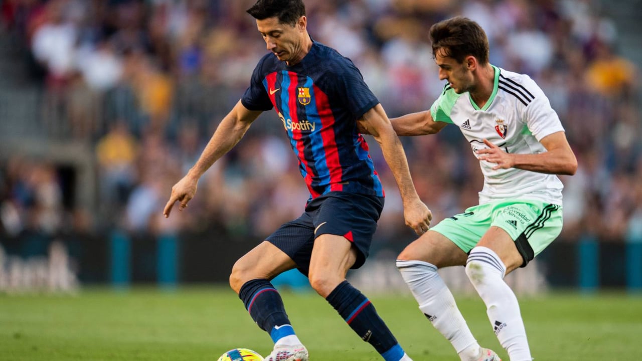 Lewandowski, durante el duelo con Osasuna.Twitter / FC Barcelona
