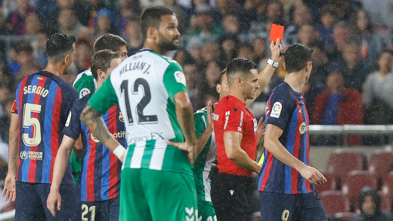 Cayó goleado el Real Betis en su visita al Camp Nou, un resultado que tampoco sería para echarse las manos a la cabeza, pues el líder se ha mostrado este curso intratable en casa (invicto y sólo dos tantos en contra en los 15 duelos anteriores), pero que escuece por los condicionantes. Algunos dirán que, cuando se pierde 4-0, buscar excusas es absurdo, pero, curiosamente, los 'empujoncitos' arbitrales que no necesitan los poderosos se suceden año tras año, especialmente en estos escenarios que tanto abruman. El infortunio de Luiz Felipe, lesionado a los doce minutos; la torpeza de Edgar, que fue muy fuerte con una amarilla ya; y la enorme calidad del ataque culé fueron factores determinantes, claro que sí, aunque Del Cerro Grande ayudó en un momento clave, justo antes del 2-0, expulsando al central catalán tras una primera amonestación harto dudosa y muy recurrible, mientras que el VAR validó el tanto que el madrileño había anulado a instancias de su asistente por fuera de juego de Raphinha que, según las líneas trazadas por Jaime Latre, sigue dejando dudas, con el azul y el rojo solapados.