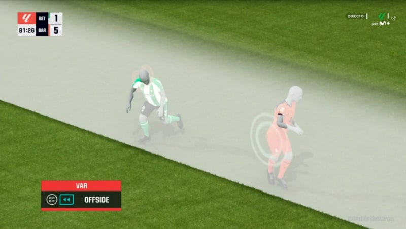 Jugada personal de Rashford, bloqueado por Bartra primero y tirándose luego muy largo el regate sobre Valles, que se luce a continuación en un mano a mano con Lamine Yamal. Se revisa en el VAR una posible mano del central bético hace un mundo, aunque le rebota claramente en la pierna antes de que toque en el brazo.