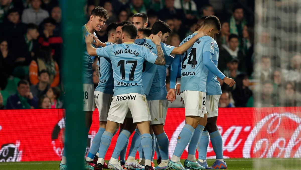 La perdió rápido el Betis, Larsen ganó línea de fondo y el pase al área lo remató el joven gallego, aprovechando que Pezzella se fue al suelo, para hacer doblete y remontar para los celestes